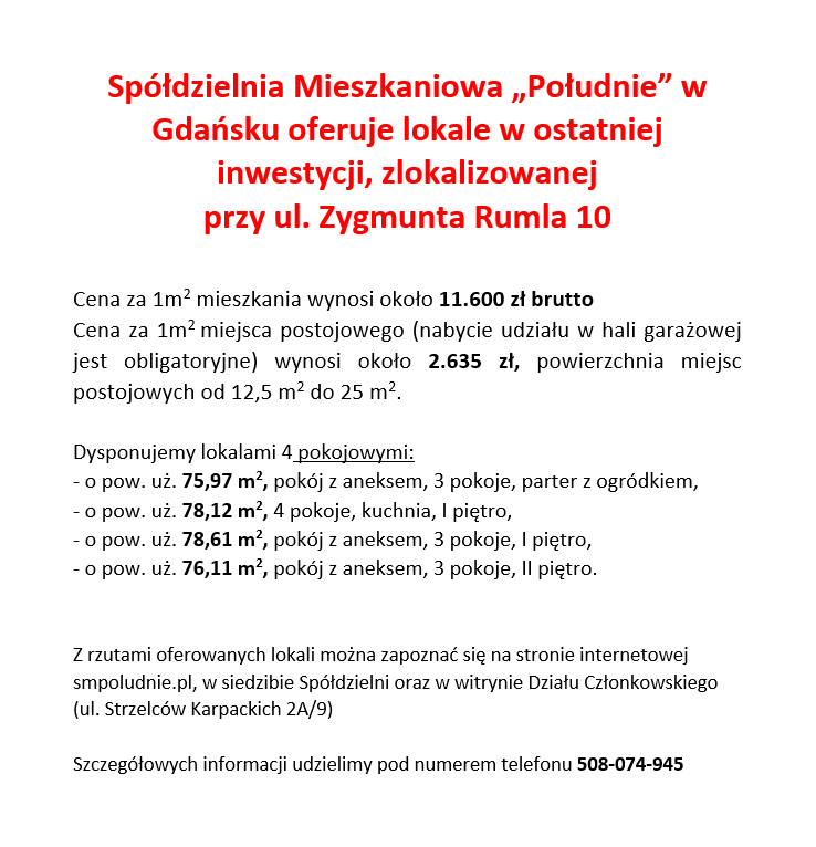 Lokale dostępne w ostatniej inwestycji - SM Poludnie Gdańsk